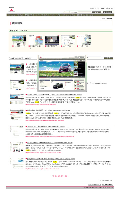 見えるサイト内検索エンジン「i-search」は、検索結果ページに従来の文字(テキスト)表示に加えて、検索結果対象ページのキャプチャー画像を同時に表示することができます。 また、表示された画像にマウスオーバーすると拡大画像がポップアップ表示されるため、ユーザーが各ページにリンクする前にページ概要を視覚的・直感的に把握することができ、目的のページを素早く的確に探せるとともに、企業サイトの検索結果ページのデザイン性向上を実現します。また、SaaS型での提供でありながら機能の柔軟なカスタマイズ対応も可能です。 本サービスは初期費用10万円~、月額費用5万円~で提供です。導入する企業は、短期間かつ、低コストでサイト内検索エンジン導入を実現でき、ホームページ利用者のユーザビリティ向上がはかれます。