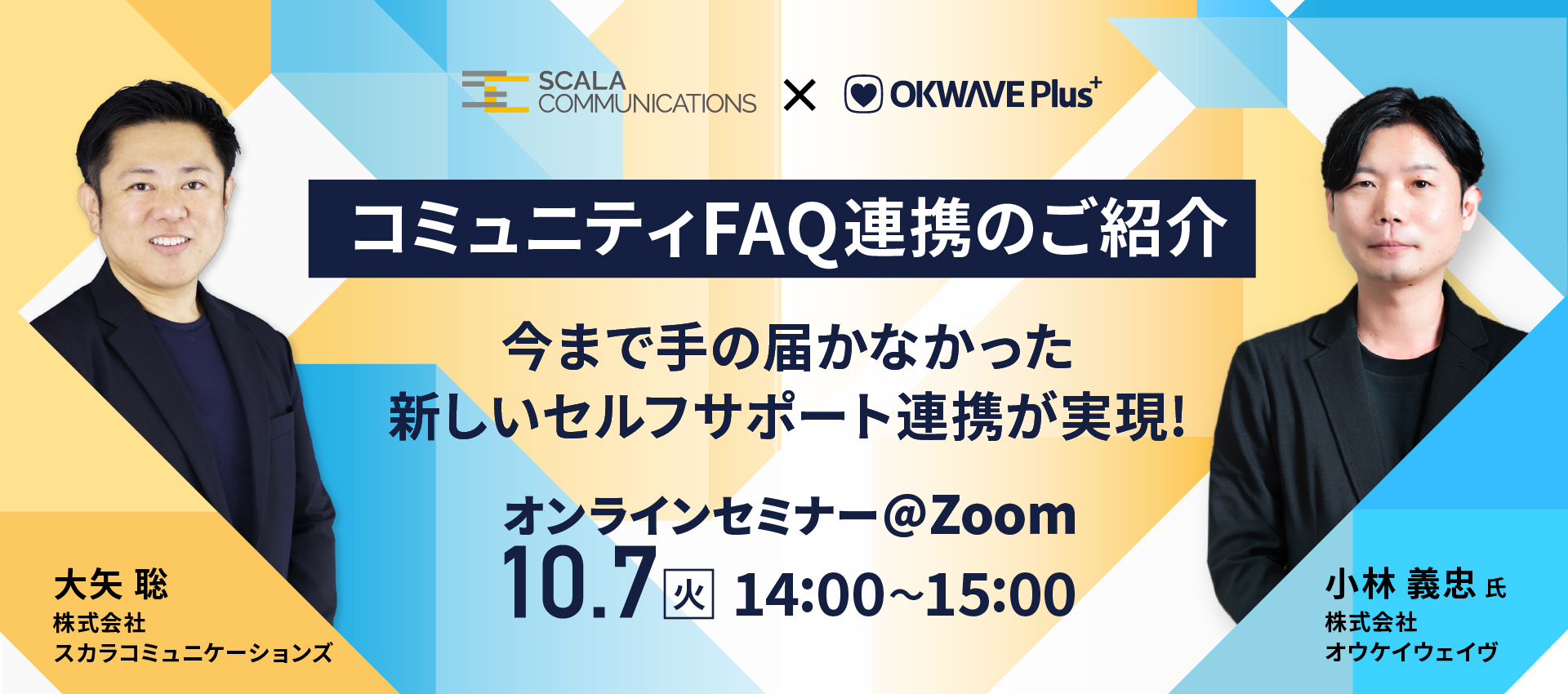 当社は、「2つのFAQソリューションを融合した、次世代セルフサポートの実現」をテーマに、株式会社オウケイウェイヴを共催企業として迎えた無料オンラインセミナーを開催いたします。
